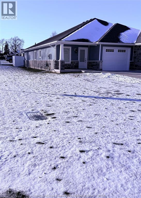 HARROW! WITHIN MINUTES DRIVE TO THE WINERIES! BEAUTIFUL SEMI DETACHED RANCH W/OPEN CONCEPT DESIGN OFFERS 2 BDRMS (MASTER RETREAT W/ENSUITE & WALK-IN CLOSET), 2 BATHS, LIVING ROOM W/PATIO DOORS TO REAR COVERED PORCH, SHARP WHITE KITCHEN W/SS APPLS (GAS STOVE), MAIN FLOOR LAUNDRY, VAULTED CEILINGS, GORGEOUS VINYL & CERAMIC FLOORS & QUARTZ COUNTER TOPS THRU OUT. FULL BASEMENT FOR STORAGE, ATTACHED GARAGE W/INSIDE ENTRY & COVERED FRONT PORCH. (id:4555)